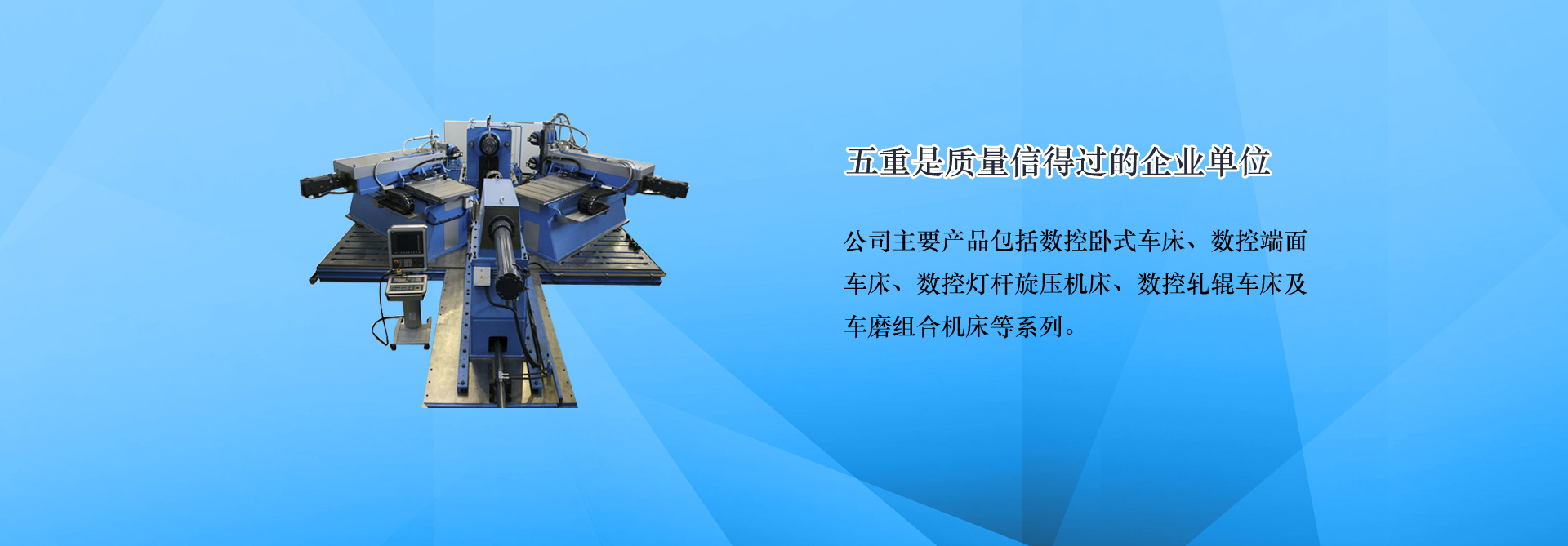 青島五重?cái)?shù)控機(jī)床有限公司(原青島第五重型機(jī)械廠)是一家集科研,生產(chǎn),銷售為一體的數(shù)控機(jī)床生產(chǎn)企業(yè),主要產(chǎn)品:端面車床,數(shù)控端面車床,車銑復(fù)合機(jī)床,車磨組合機(jī)床,膠輥磨床,地磅遙控器,數(shù)控旋壓機(jī)。連續(xù)多年被評(píng)為青島市信用企業(yè)、質(zhì)量信得過單位。公司位于青島國際中小企業(yè)工業(yè)園,地理位置優(yōu)越,距流亭飛機(jī)場(chǎng)僅10公里,濟(jì)青、榮烏、青威等多條高速公路經(jīng)過,交通十分便利。... [MORE + ]